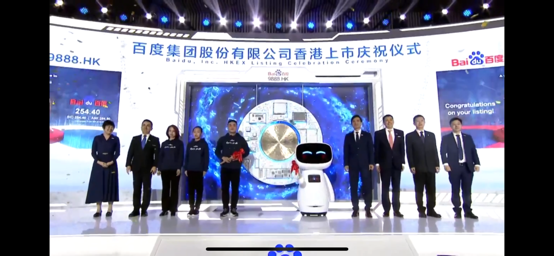 3月23日,百度在港交所二次掛牌上市,當天開盤價為每股254港元,較發行價252港元上漲0.79%,但盤中一度遭遇破發,跌0.08%,收報252港元,與發行價持平,成交額37.02億港元,總市值7128.7億港元。