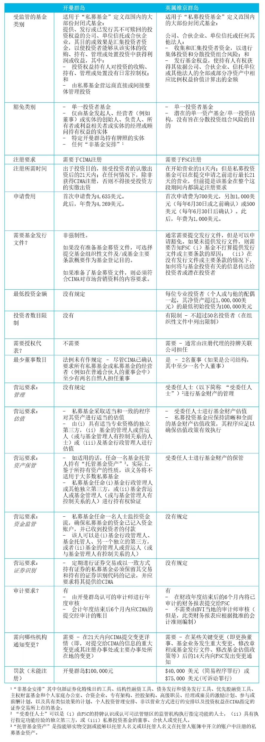 開曼群島與BVI私募基金制度之間的主要法規比較