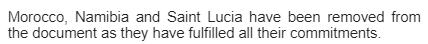 本次更新中,摩洛哥、納米比亞和圣盧西亞已被移出非合作名單,因為這三個國家已經履行了所有承諾,符合歐盟稅收要求,正式成為歐盟稅收白名單。